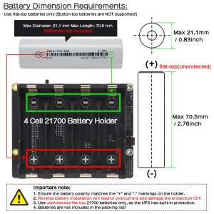 | *X1205 | Raspberry Pi 5 | Bottom | 3.7V 21700 Battery | 2-Cell |